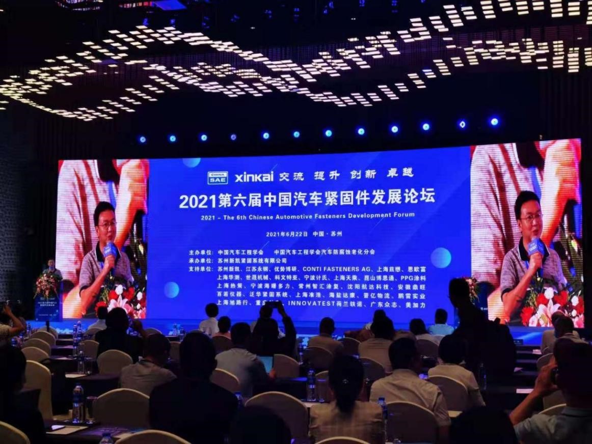 2021年6月22日,由中國汽車工程學(xué)會、中國汽車工程學(xué)會汽車防腐蝕老化分會主辦的“2021 第六屆中國汽車緊固件發(fā)展論壇”在蘇州匯融廣場假日酒店召開。汽車主機廠和相關(guān)配套企業(yè)等代表參加本次會議。會議主題——“交流、提升、創(chuàng) 新、卓越”,最專業(yè)、最高端學(xué)術(shù)會議。會議現(xiàn)場